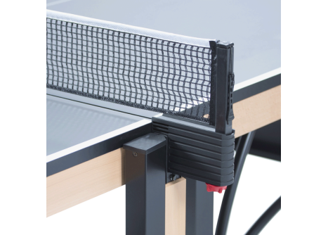 Equipements : filet réglable en hauteur et tension, table compacte, roues indoor, réglage des pieds facilité